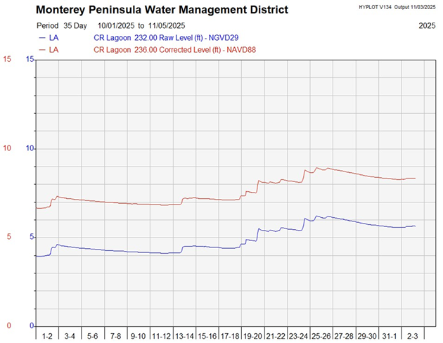 CARMEL RIVER LAGOON: In October, the lagoon’s Water Surface Elevation